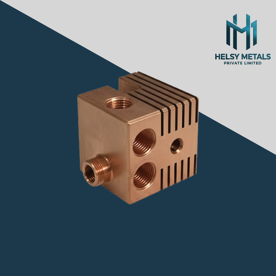บล็อกทองแดงที่ผลิตด้วยเครื่องจักร VMC ที่ทนทานสำหรับการใช้งานที่มีกระแสไฟสูง พร้อมเกลียวที่มีความแม่นยำและร่องระบายความร้อน