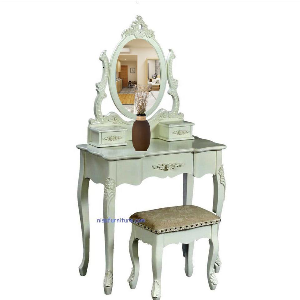 โต๊ะแต่งหน้าสไตล์วินเทจฝรั่งเศสที่ทนทานพร้อมกระจกดีไซน์หรูหราเฟอร์นิเจอร์บ้านไม้