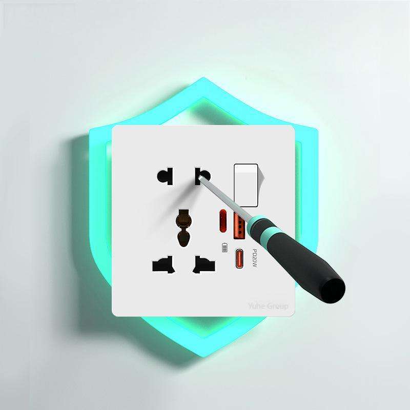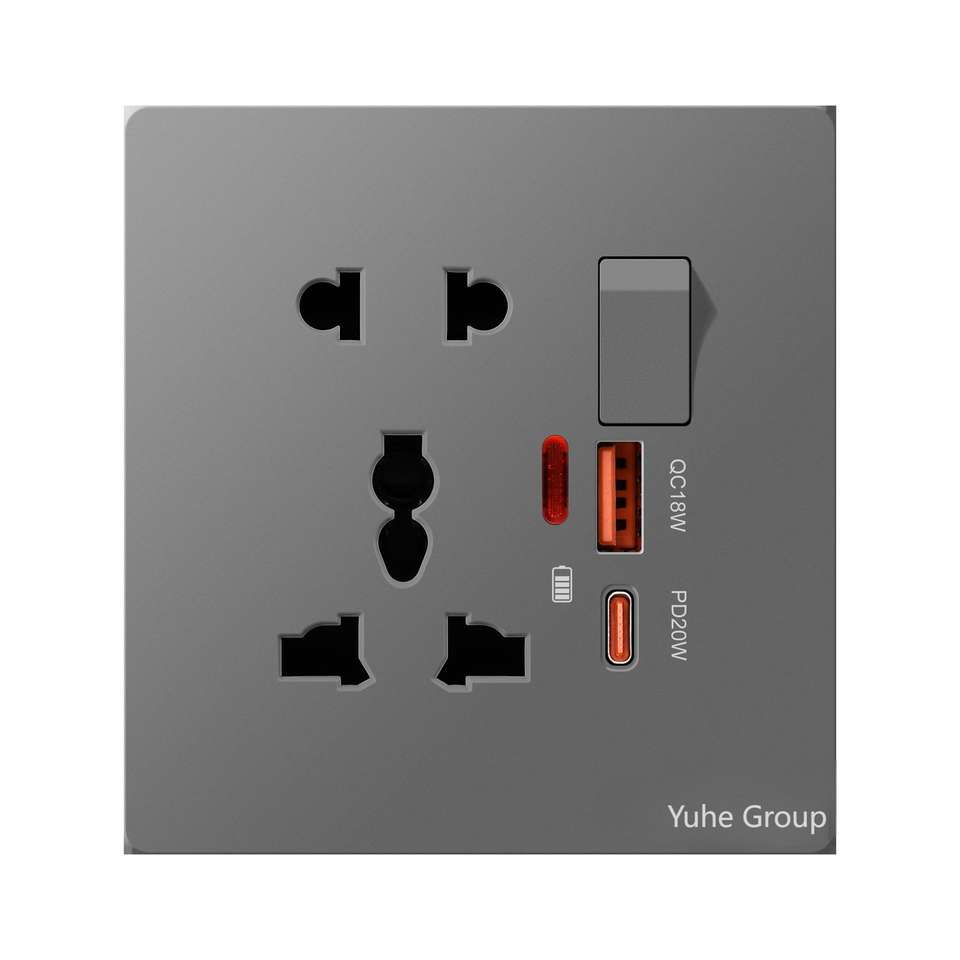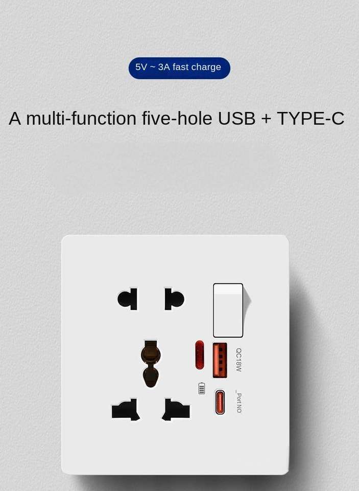 ปลั๊กไฟติดผนังแบบสัมผัสทนทาน 20W ชาร์จเร็ว 10A วัสดุ PC ปลั๊กไฟอเนกประสงค์ 5 ขา แบบ UK ปลั๊กไฟฟ้ากระแสสลับ
