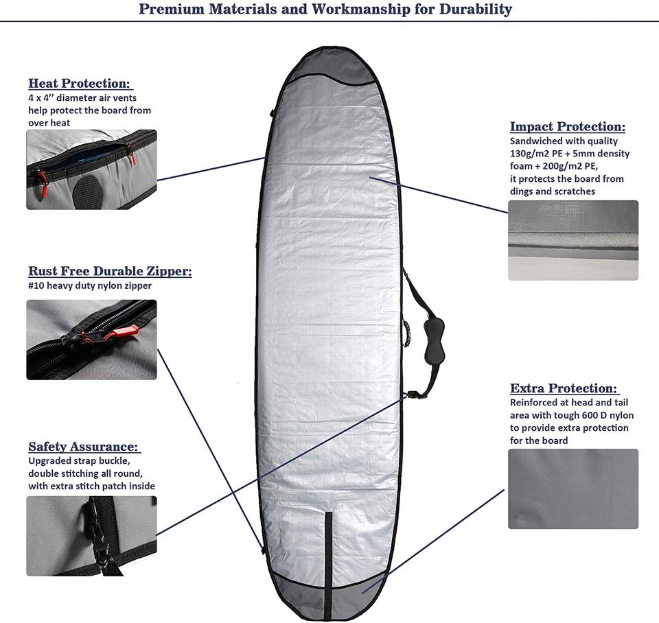 กระเป๋าใส่แผ่นโพลีเอทิลบอร์ดแบบยืนทำจากโฟมปลอกแพดเดิลบอร์ดกันน้ำทนทาน