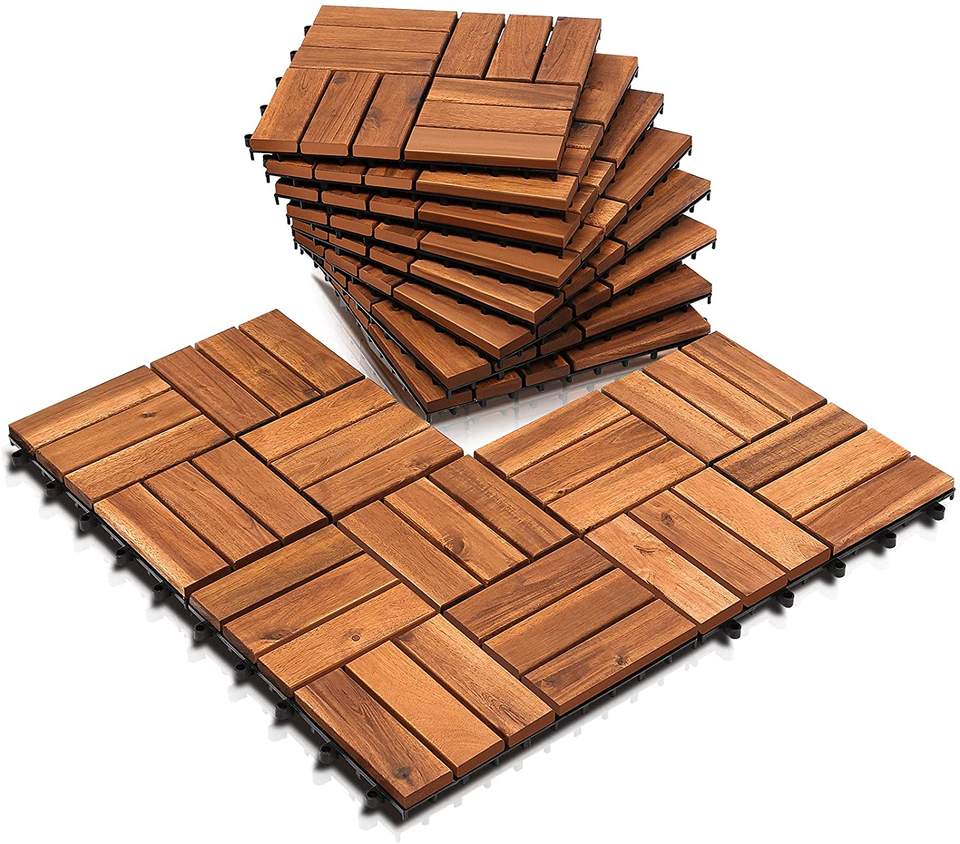 กระเบื้องพื้นไม้สำหรับกลางแจ้งแบบประกบกันได้ ทนทาน กันน้ำ กันลื่น ดีไซน์ทันสมัย ผลิตจากไม้กระถินเวียดนาม ขนาด 300x300 มม. เป็นมิตรกับสิ่งแวดล้อม ได้รับการรับรองมาตรฐาน FSC