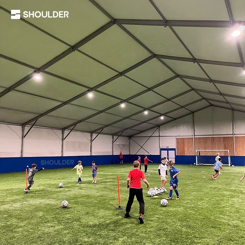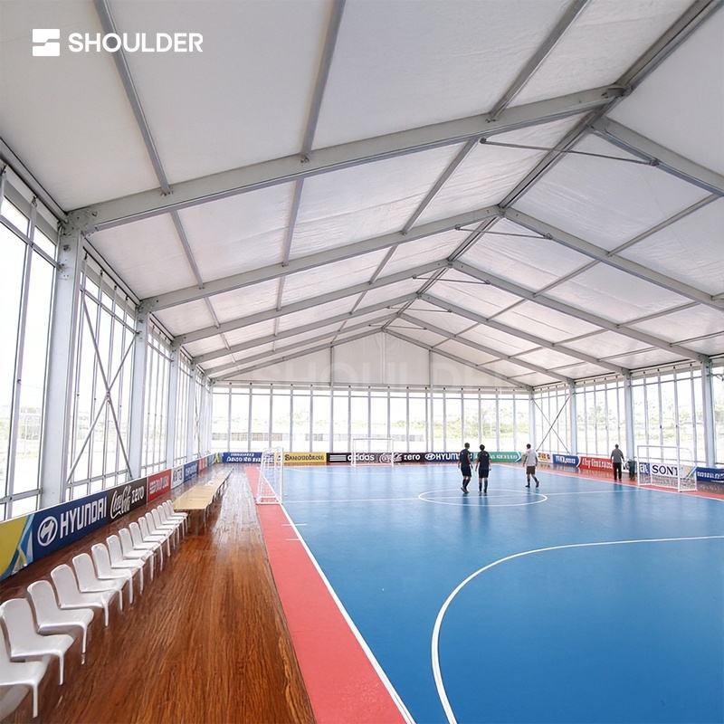 เต็นท์สนามฟุตบอลแบบพกพา ทนทานต่อสภาพอากาศ โครงสร้างอลูมิเนียมชั่วคราว สำหรับฟุตซอลในประเทศไทย ฝึกซ้อมฟุตบอล