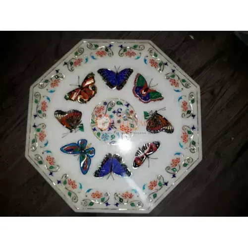 กระเบื้องติดผนังลายศิลปะผีเสื้อหินอ่อนสีขาวทนทานสำหรับพื้นกลางแจ้งและในร่มกระเบื้องตกแต่งบ้านแบบฝังหลายชั้นสวยงาม