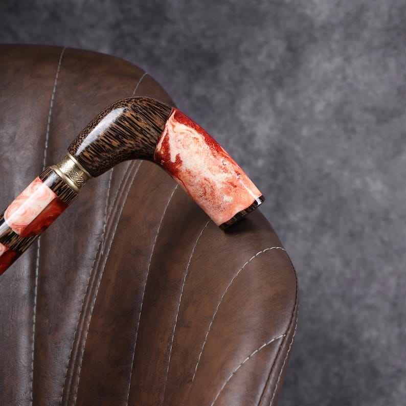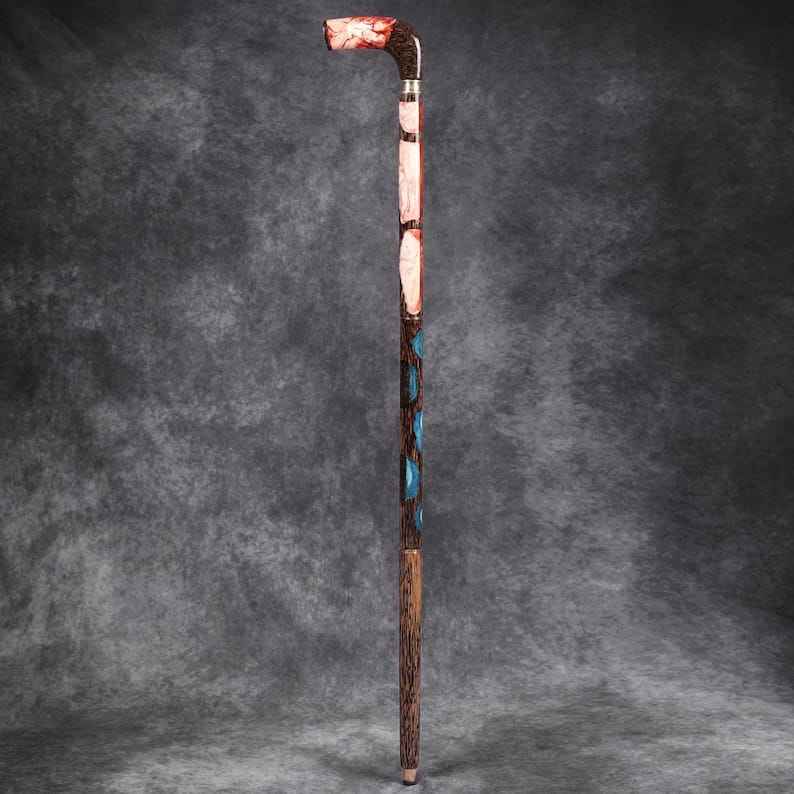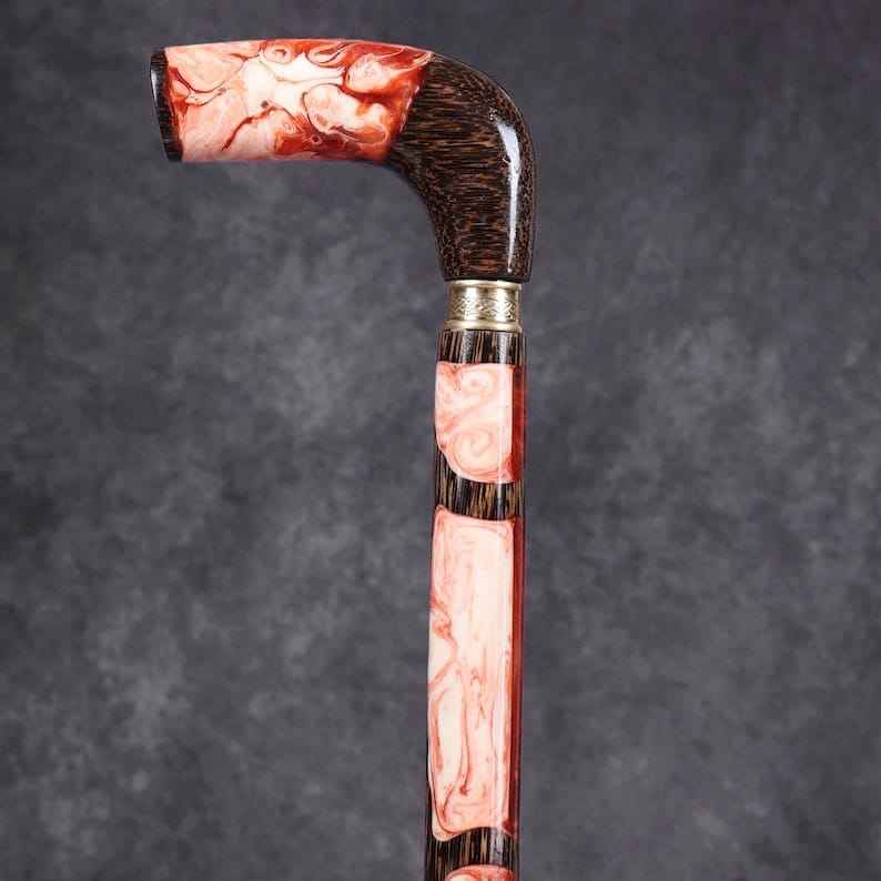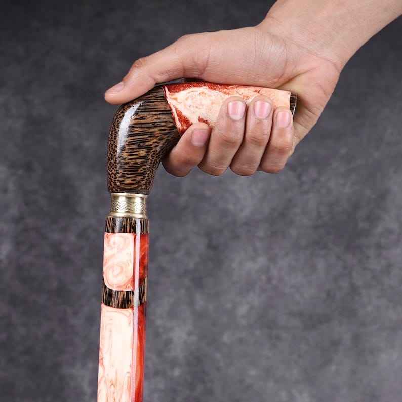 ไม้เท้าทำจากเรซิ่นและไม้ ด้ามจับเรซิ่นที่ให้ความรู้สึกสบาย พร้อมกับแกนไม้ที่ทนทาน