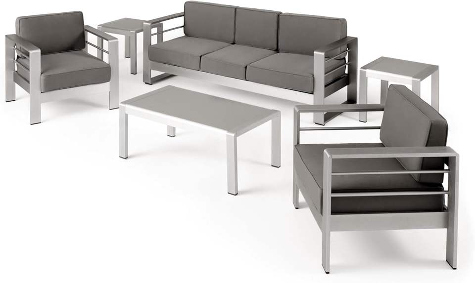 ชุดโซฟาลานอลูมิเนียมทนทานพร้อมเบาะรองนั่งเฟอร์นิเจอร์กลางแจ้งสำหรับสวนระเบียงระเบียงดาดฟ้าและริมสระน้ำผ่อนคลาย