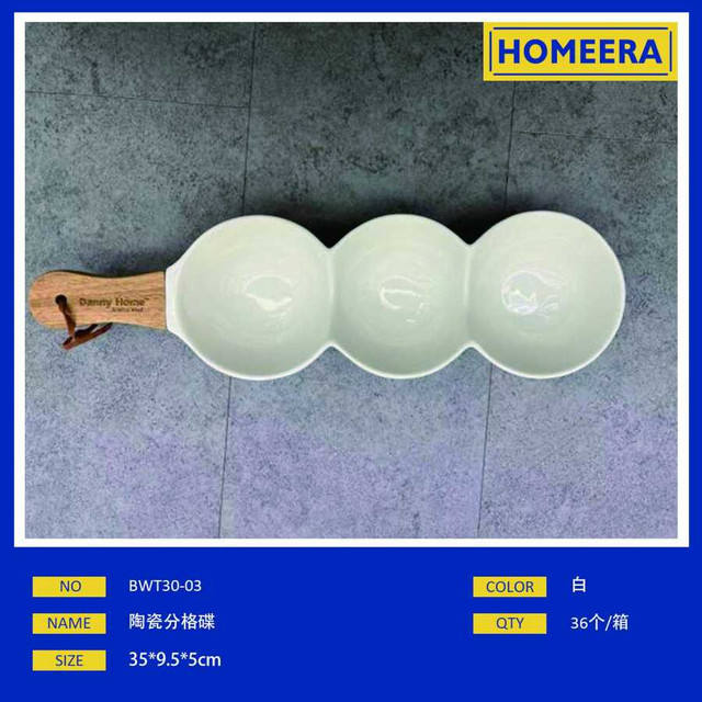 Durable and Stylish 14 Inch Porcelain Plate Set with Acacia Wood Handle 6 Pcs Per Box Serve Trays for Hotels