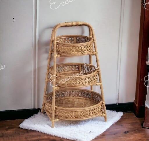 ตะกร้าผลไม้หวายสามชั้นทนทานและมีสไตล์สำหรับผักและผลไม้สดใหม่