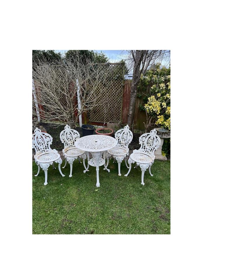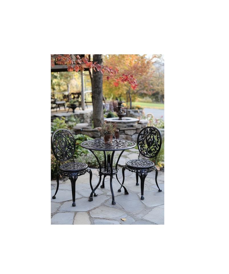 ชุดโต๊ะและเก้าอี้แบบสองที่นั่งทำจากเหล็กหล่อที่ทนทานและสง่างามเหมาะสำหรับใช้ในห้องนั่งเล่นสวนรับประทานอาหารกลางแจ้ง