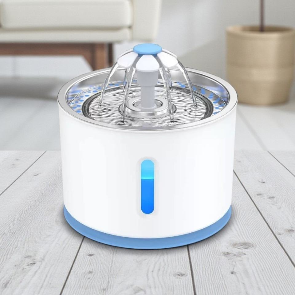 น้ำพุสุนัขอัตโนมัติทันสมัย ทนทาน เป็นมิตรกับสิ่งแวดล้อม ทำจากสแตนเลส ขนาด 2.4 ลิตร ป้องกันการรั่วซึม ดีไซน์สวยงาม พร้อมระบบกรองสามชั้น