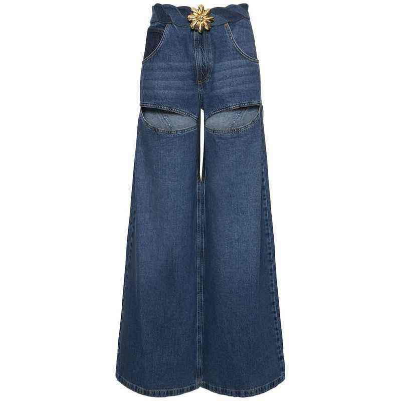 กางเกงยีนส์ผู้หญิงทรงหลวม ทนทาน ตัดเย็บด้วยดีไซน์ขากว้าง เย็บอย่างแข็งแรง สวมใส่สบาย เหมาะสำหรับลุคในเมืองในชีวิตประจำวัน