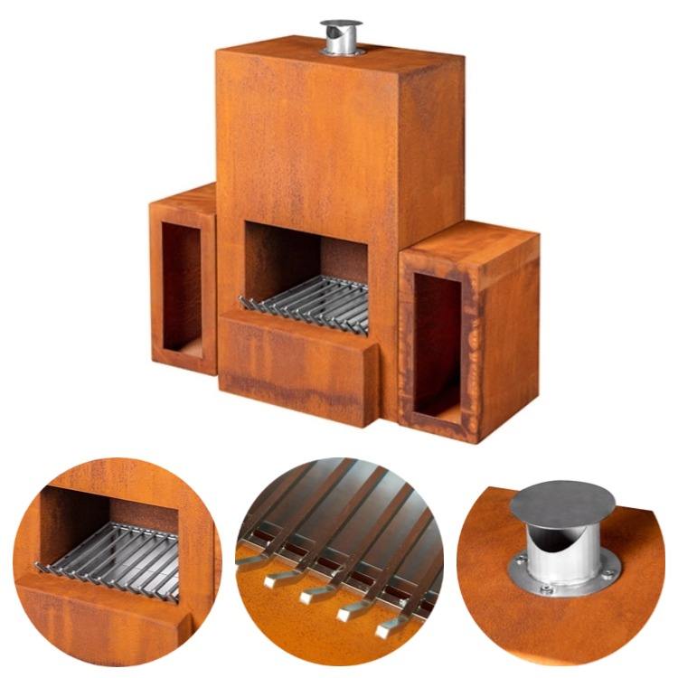 ทนทานสวยงามและง่ายต่อการรักษาสภาพดินฟ้าอากาศเตาผิงเหล็กพร้อมตู้เก็บไม้