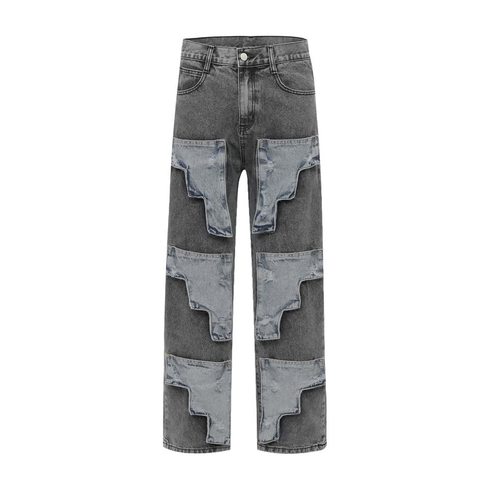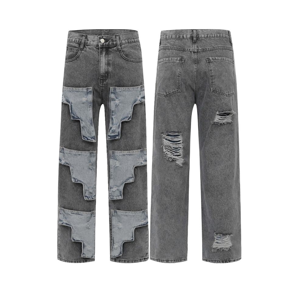 กางเกงยีนส์ผู้ชายทรงตรงเข้ารูปสำหรับใส่ทำงานกลางแจ้งแฟชั่นลำลองคลาสสิก