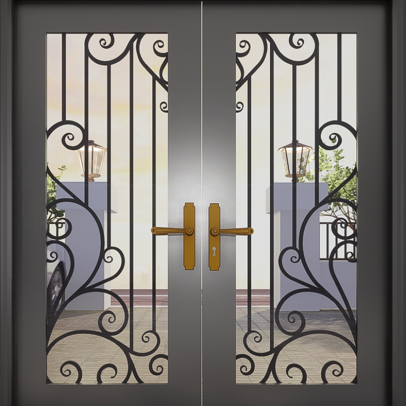 ประตูทางเข้าบ้านโลหะทนทานพร้อมพื้นผิวทนสนิมและการออกแบบที่สะอาดสมบูรณ์แบบสำหรับวิลล่าที่ทันสมัยและบ้านของครอบครัว
