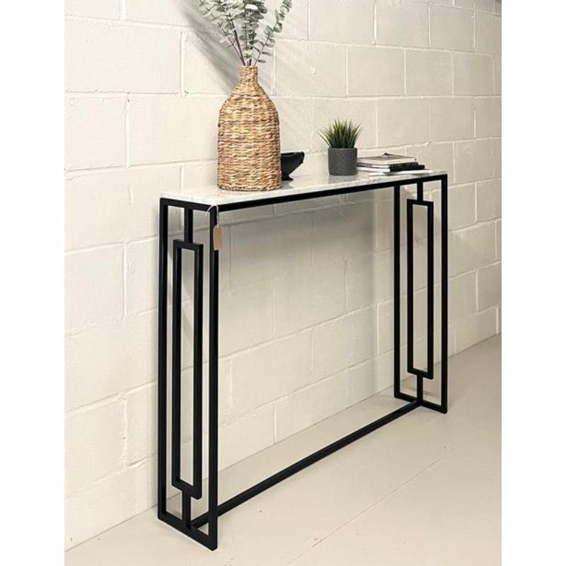 โต๊ะคอนโซลโลหะเคลือบผงที่ทนทานพร้อมกระจกด้านบนทนต่อการกัดกร่อนเหมาะสำหรับการใช้งานในร่มหรือกึ่งกลางแจ้ง