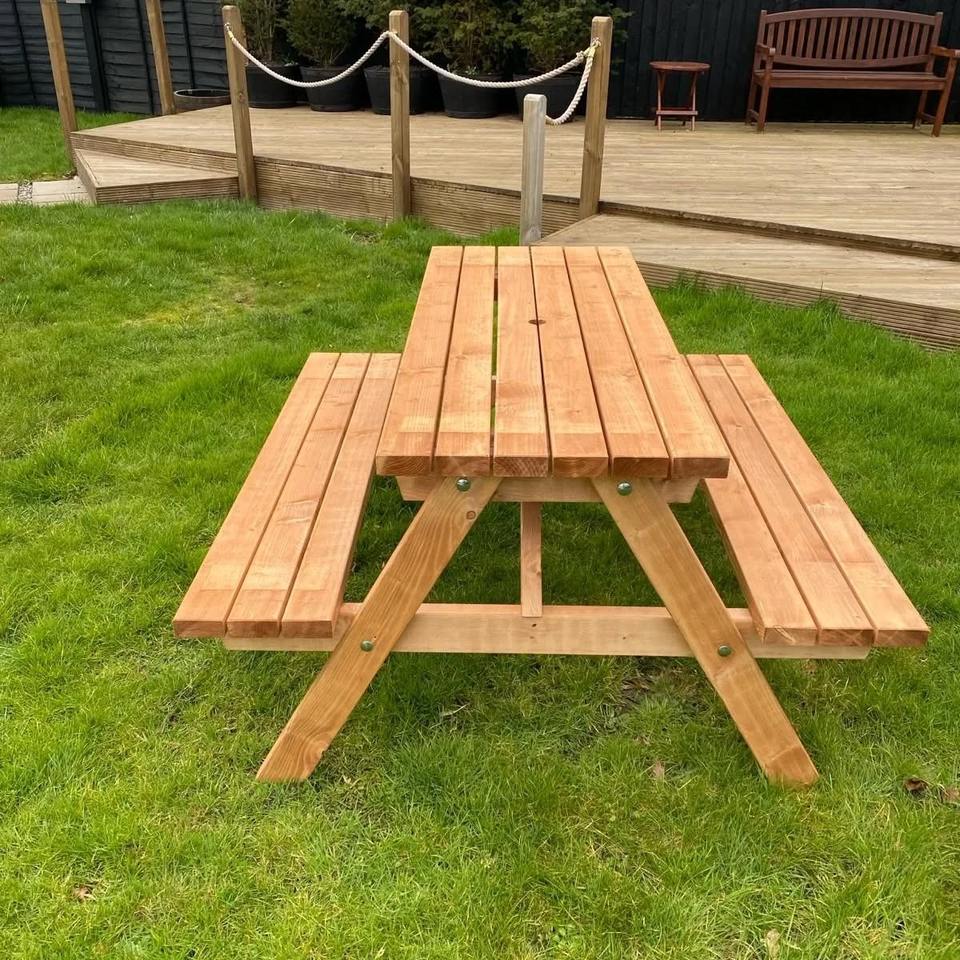 โต๊ะไม้ปิคนิคทนทานสำหรับตั้งแคมป์กลางแจ้งโต๊ะไม้สำหรับสวนธรรมชาติมาใหม่