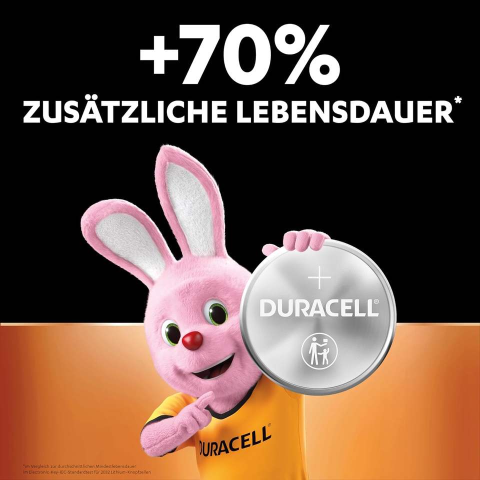ถ่านกระดุมลิเธียมดูราเซลล์ รุ่นพิเศษ 2032 3 โวลต์ แพ็ค 4 ก้อน พร้อมเทคโนโลยีป้องกันเด็ก (CR2032 /DL2032)