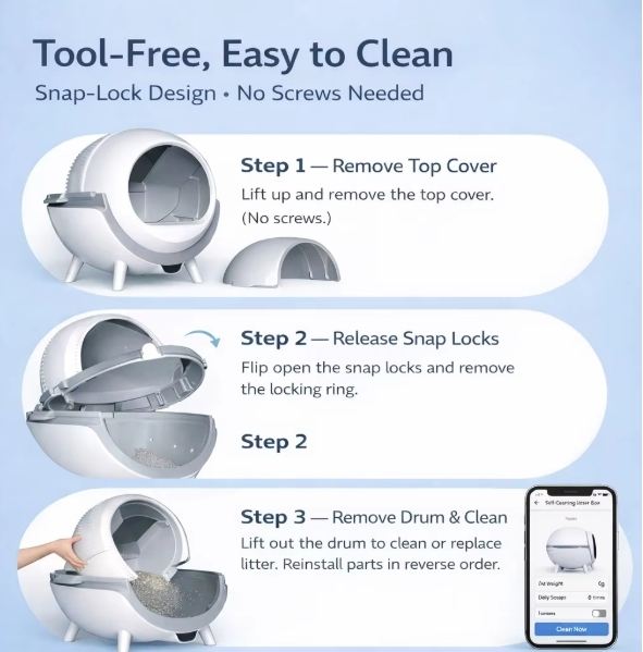 Feature 1:Fully Automatic Self-Cleaning System - no manual scooping required