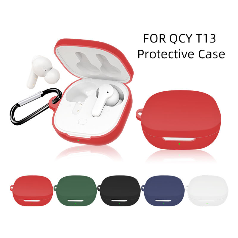 เคสกันฝุ่นสำหรับ QCY T13 เคสซิลิโคนนิ่ม เคสป้องกันสำหรับหูฟัง QCY T13 กล่องชาร์จพร้อมห่วง