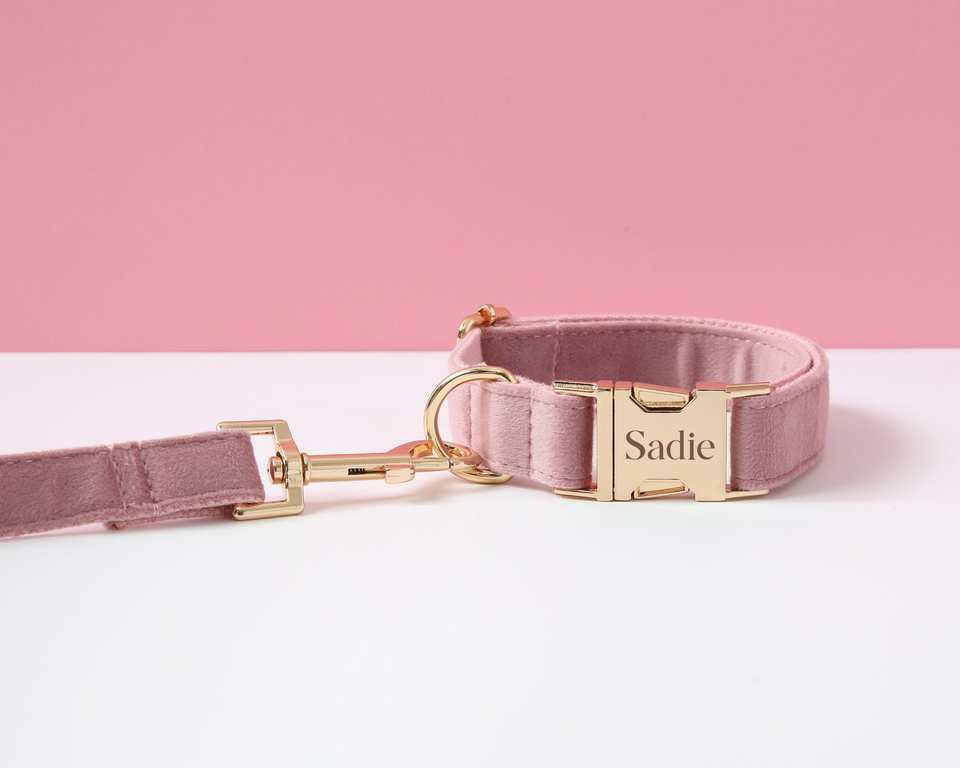 สายจูงสีชมพูฝุ่นปลอกคอและสายจูงสำหรับลูกสุนัขขนาดเล็กคอปกงานแต่งงานหนาของขวัญคนรักสุนัข UK