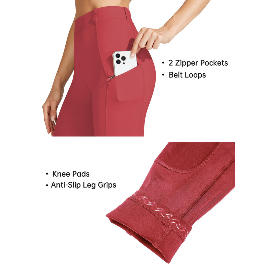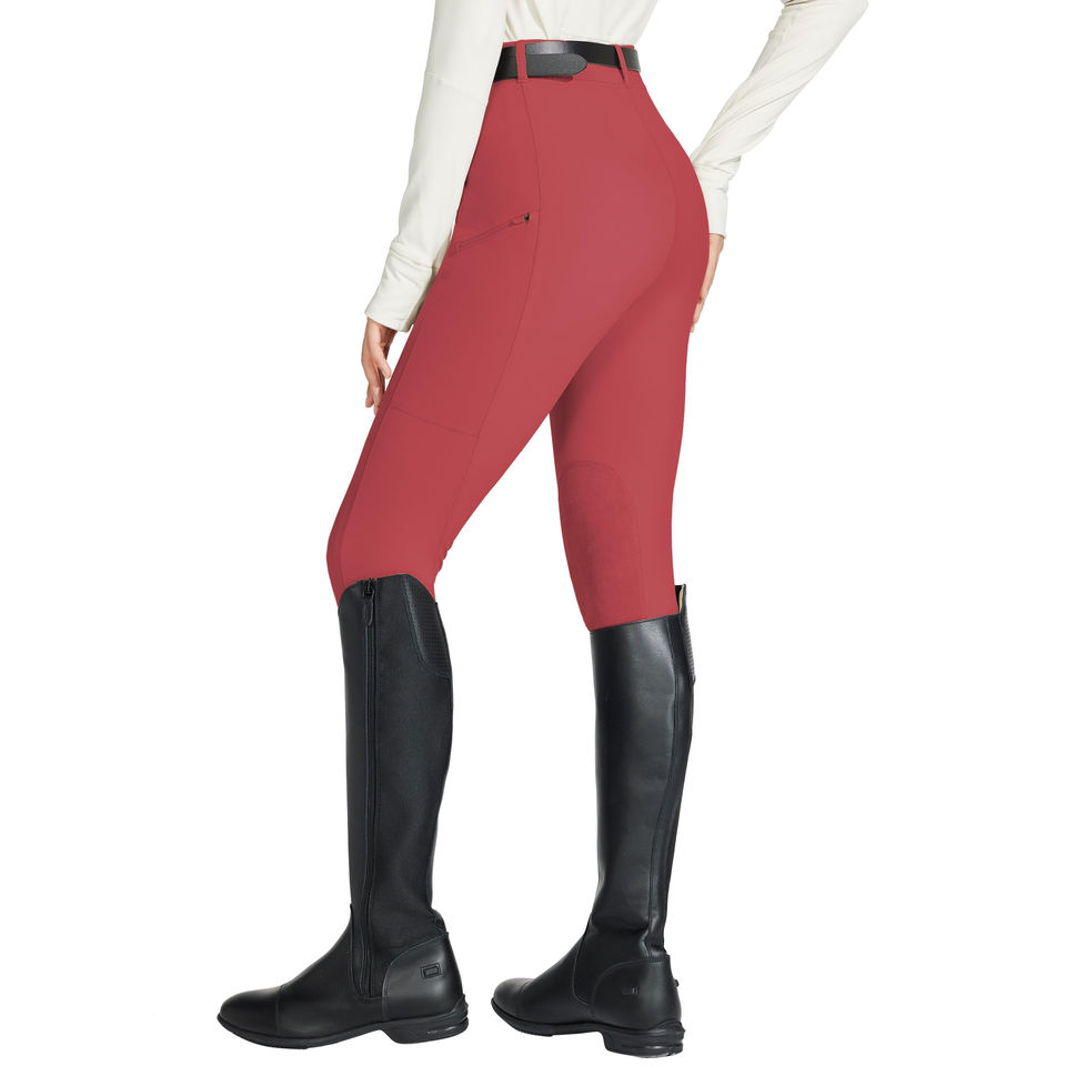 กางเกงขี่ม้าสีแดงอมเทาสำหรับผู้หญิง ทรงจ๊อดปูร์และบรีชส์ เอวสูงยืดหยุ่น พร้อมโลโก้สั่งทำ ตามเทรนด์แฟชั่นขี่ม้าประจำฤดูใบไม้ร่วง