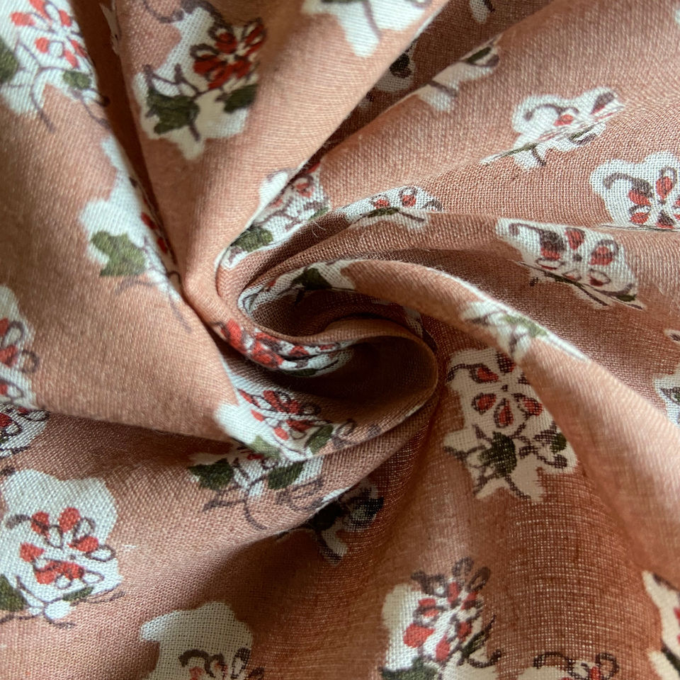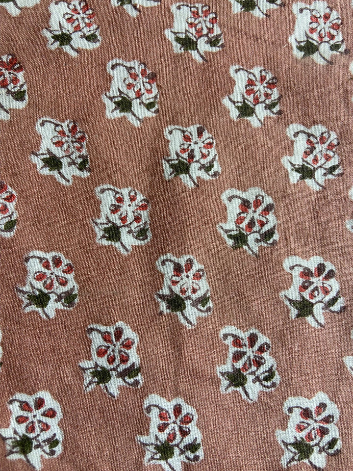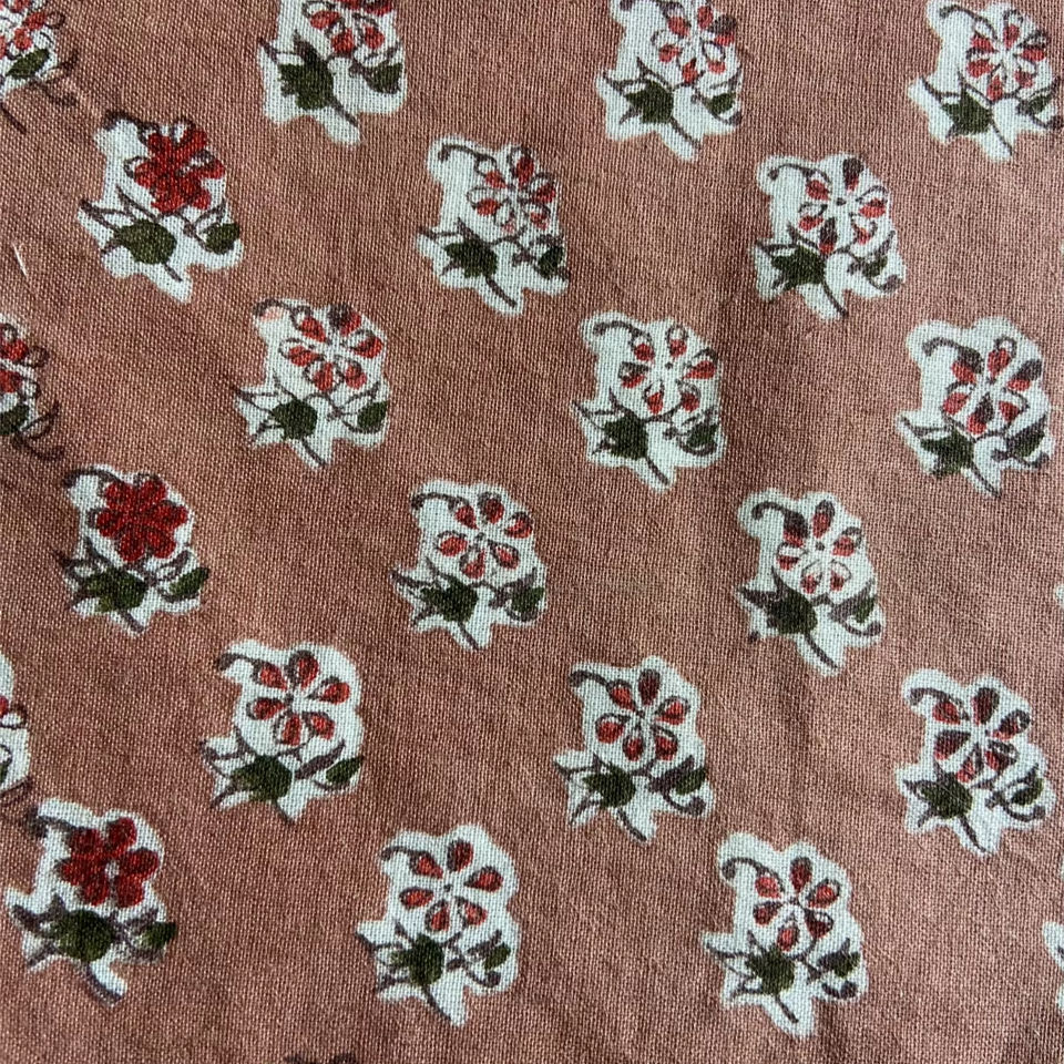 Dusty Rose Floral Buti Hand Block Printed Cotton Fabric Vintage Indo-European Design