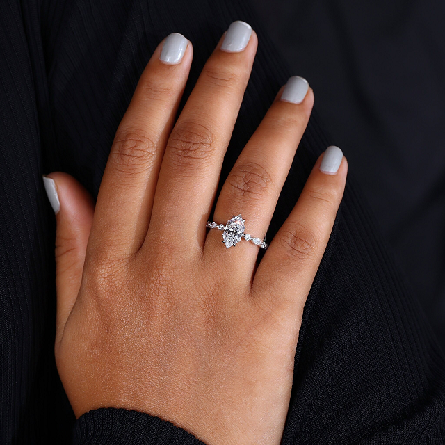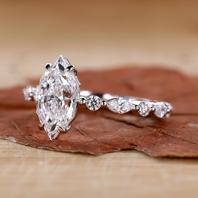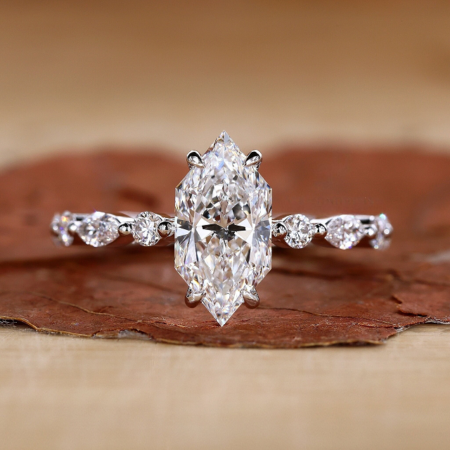 แหวนเพชรหมั้นทรงมาร์ควิสแบบดัตช์ ได้รับการรับรองจาก IGI เพชรเพาะเลี้ยงในห้องปฏิบัติการ แหวนเพชรทรงโบราณ ผลิตด้วยมือโดย Diamondrensu