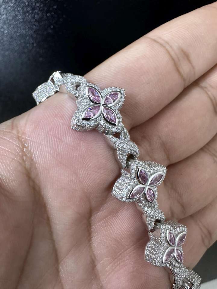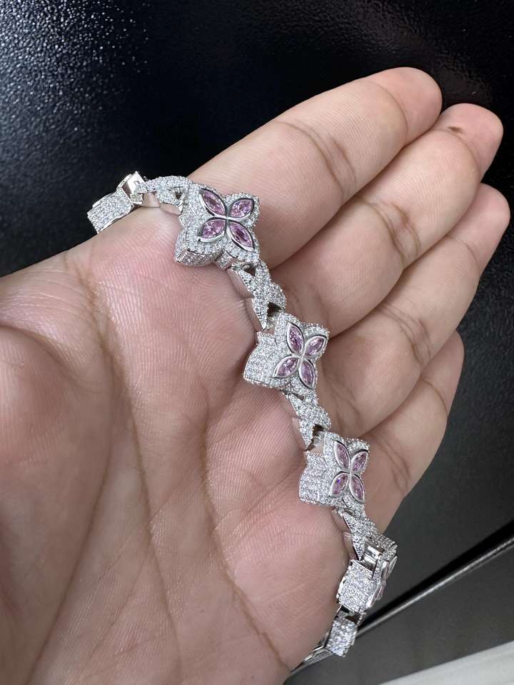 Dvars สร้อยเพชรรูปใบโคลเวอร์ชุบทอง925สเตอร์ลิงของผู้หญิงที่กำลังเป็นที่นิยมและการเชื่อมโยงสร้อยข้อมือเพชรโมอิสแซฟไฟร์สีชมพู