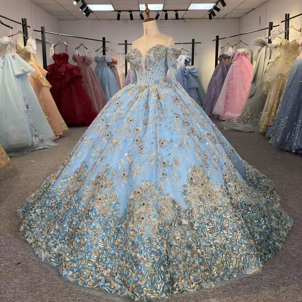 ชุดราตรีสีฟ้า Dy6974 แบบ Sweetheart ประดับลูกไม้ปักลายหรูหราจากเม็กซิโก ตกแต่งด้วยลูกปัด ผ้าชีฟอง เอวทรงธรรมชาติ ป้องกันไฟฟ้าสถิตย์ 100%