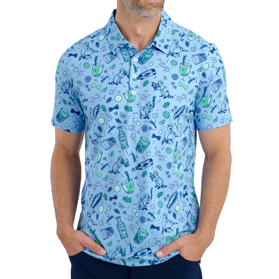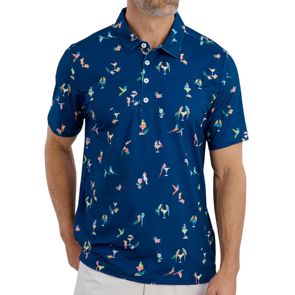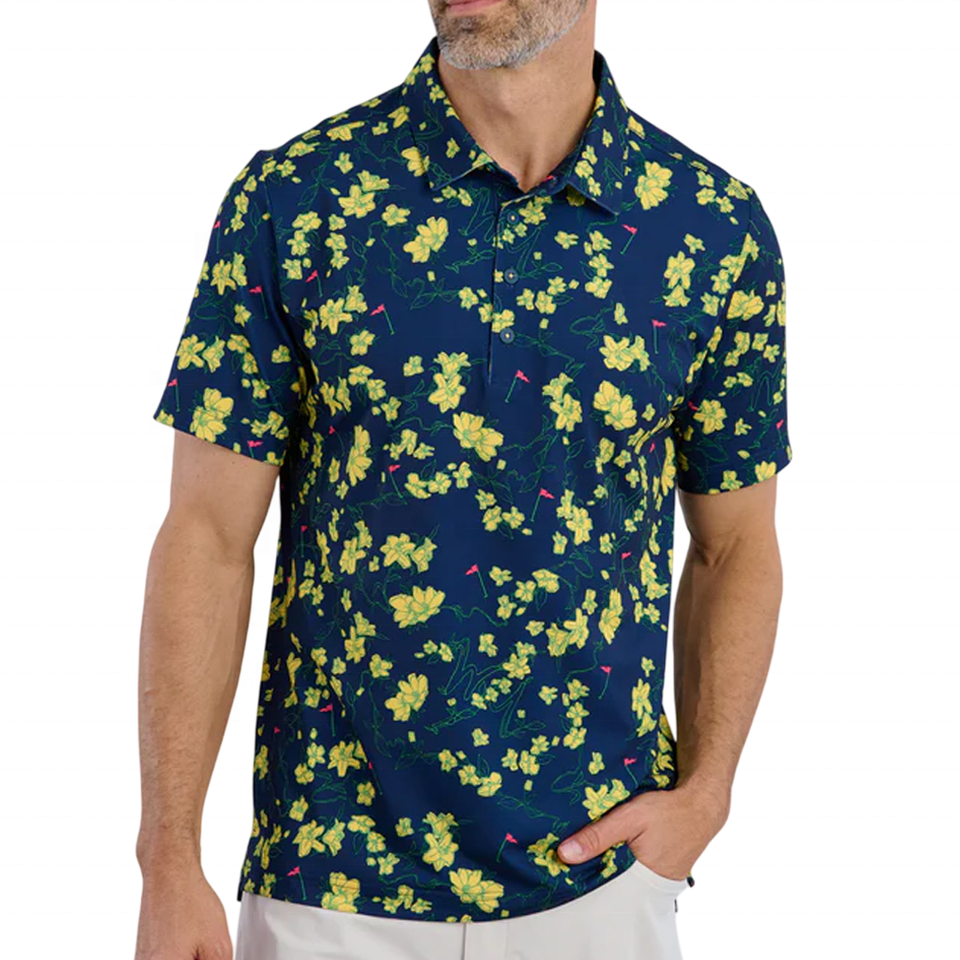 Dyesub เสื้อทีเชิ้ตกีฬาโพลีเอสเตอร์พิมพ์ลายเสื้อยืดแบรนด์โปโลพิมพ์ลายเรียวตัดพับลงสำหรับผู้ชาย