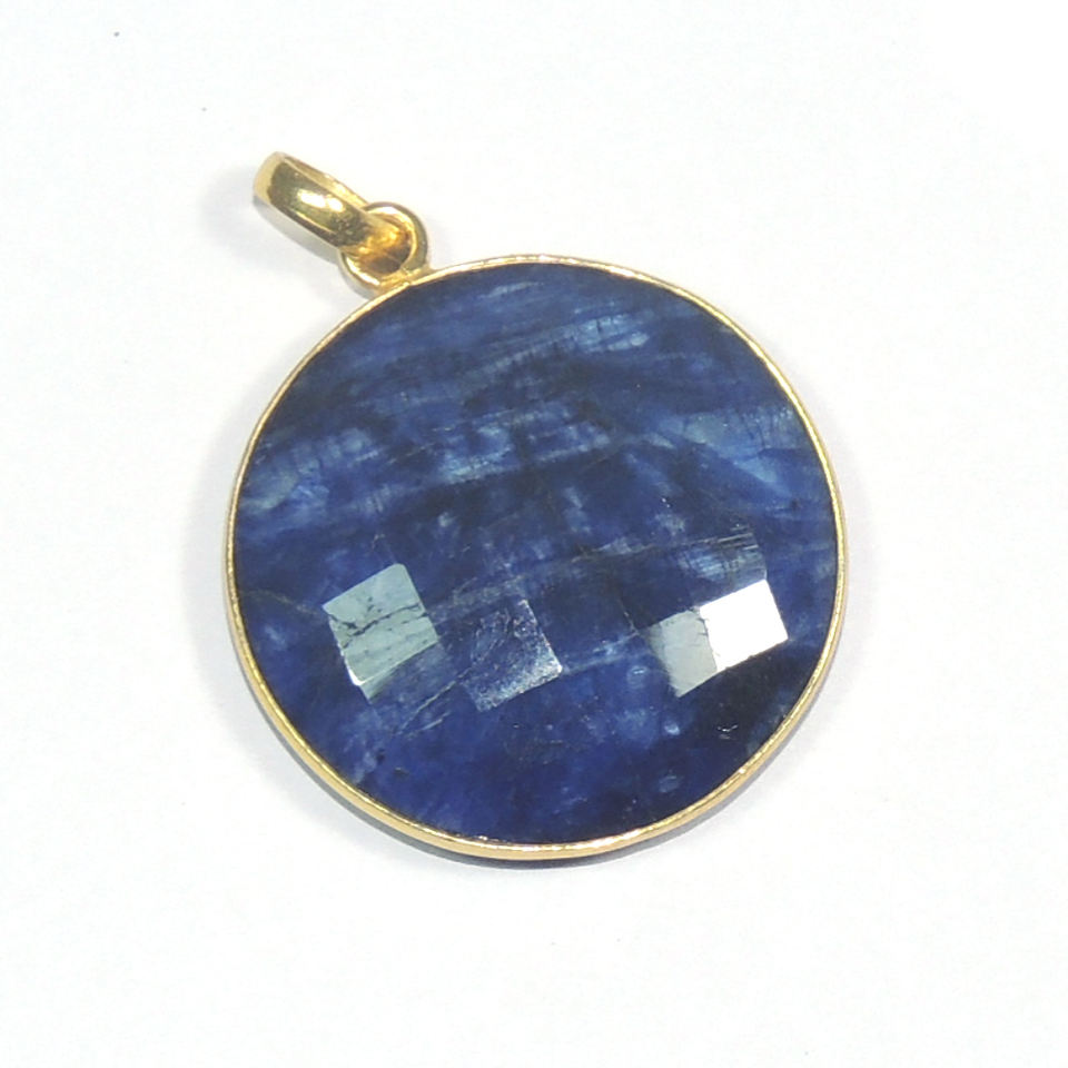 พลอยแซฟไฟร์สีฟ้าย้อมสีเรียบ925แข็งสีเงินสเตอร์ลิงอัญมณีมีค่ามูนสโตนจี้ตัดลูกแพร์