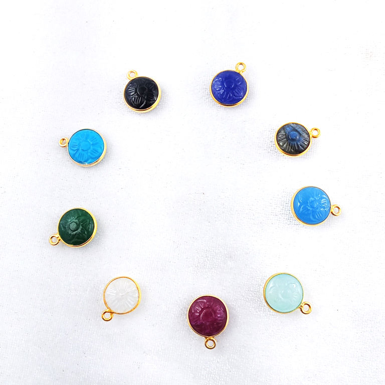 ย้อมบลูแซฟไฟร์ Size10mm ดอกไม้แกะสลักรอบรูปร่างทอง Vermeil 925เงินสเตอร์ลิงชุดฝาจี้เสน่ห์จี้เงินจี้ของ