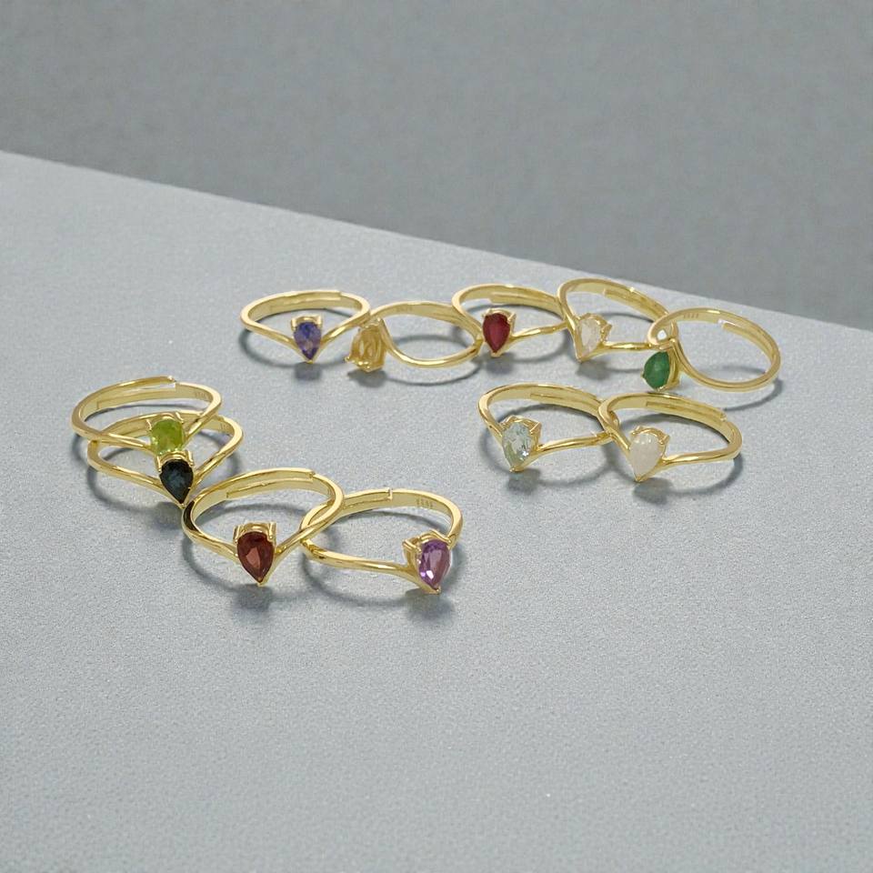 แหวนพลอยทรงลูกแพร์ชุบทองสีมรกต | แหวนเงินแท้ 925 ประดับพลอยประจำเดือนเกิดสำหรับผู้หญิง ขายส่ง