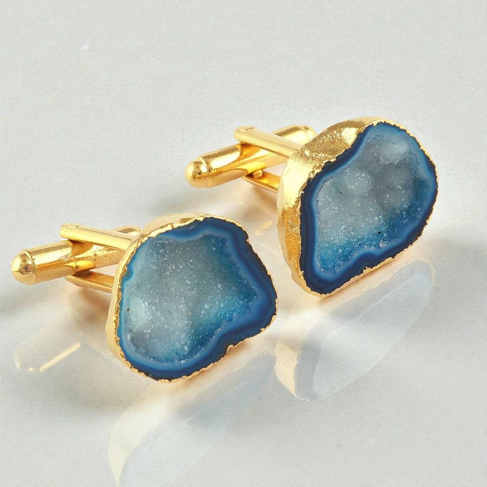 กระดุมข้อมือหินอาเกตเคลือบทอง – เครื่องประดับกระดุมข้อมือหินธรรมชาติทำมือสำหรับผู้ชาย