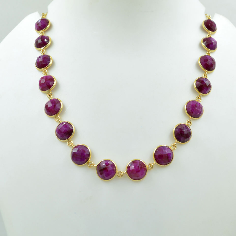 สร้อยคอพลอยทับทิมย้อมสีทรงกลม10มม. สร้อยเงินสเตอลิง925ชุบทอง18K สำหรับซัพพลายเออร์ขายส่ง