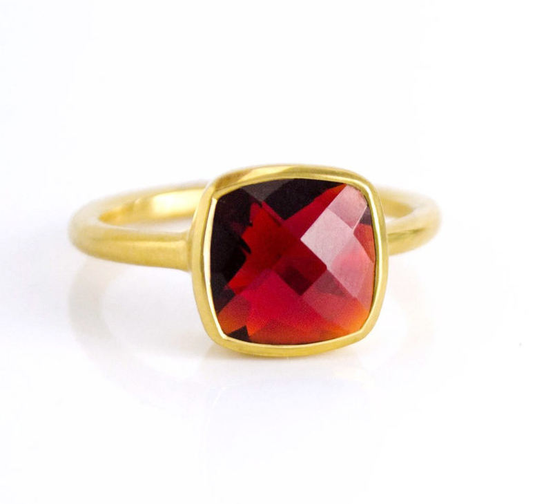 ชุดเครื่องประดับอัญมณีทับทิมย้อมสีทองเหลี่ยมเพชรพลอยขนาด10มม. ชุดแหวนเงินแท้925แหวนเงินแท้925