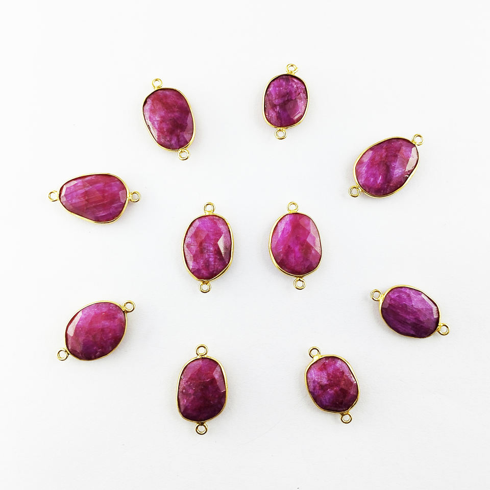 ชุดอัญมณีทับทิมย้อมสีขนาด12-16มม.,ชุดอัญมณีสีทองเงินสเตอริง925ทรงฟรีฟอร์มตัวเชื่อมต่อขอบโลหะเพื่อรักษาตัวเชื่อมต่อมีเสน่ห์