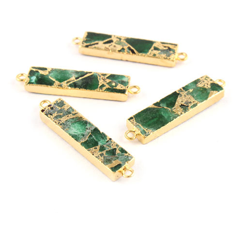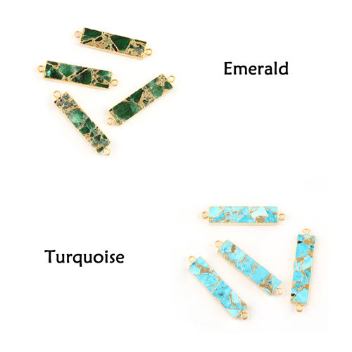 24K ทองชุบเคลือบอิเล็กโทรเพลท์ย้อมสีมรกตโมฮาวีทองแดงแท่งรูปร่างคู่การเชื่อมต่อทำเครื่องประดับทองเหลืองการค้นพบและส่วนประกอบ