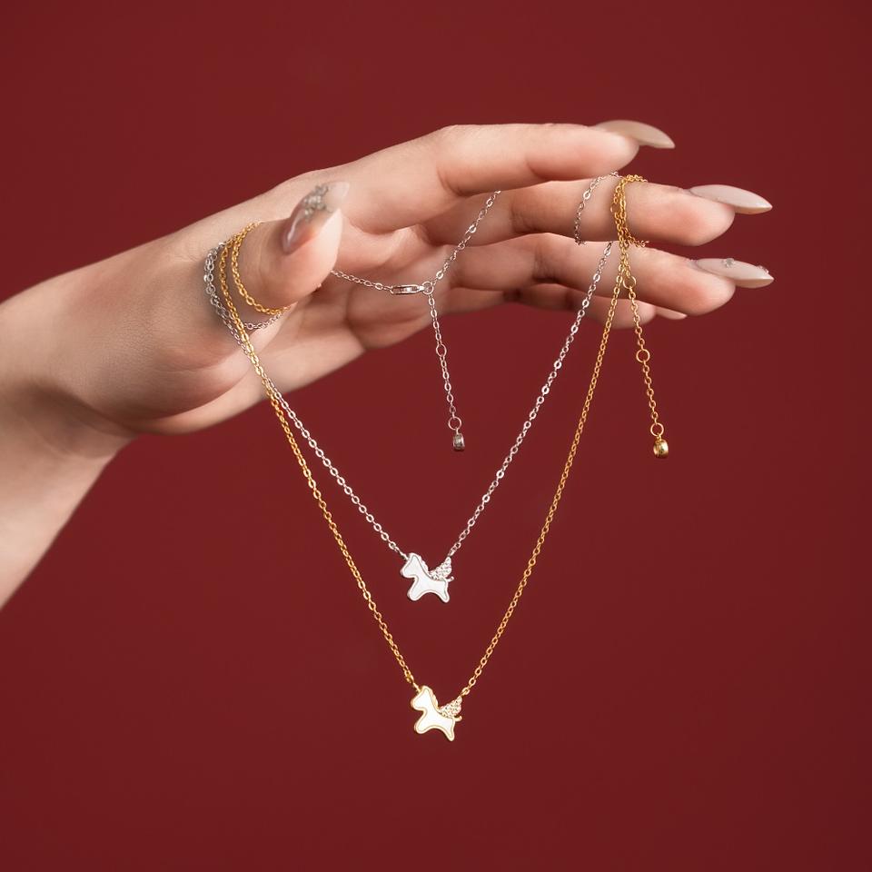 สร้อยคอพร้อมจี้รูปม้ายูนิคอร์น ดีไซน์ดีแลม สวัสดีปีใหม่ตามปฏิทินจีน ประดับด้วยเซอร์โคเนีย 5A เงินแท้ S925