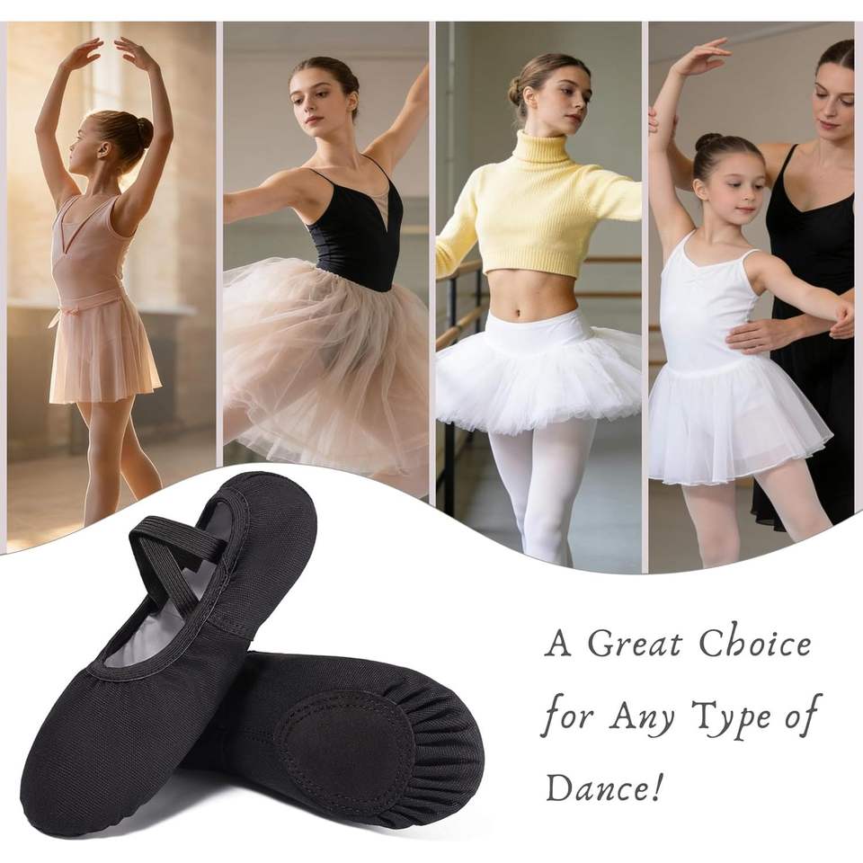 รองเท้าบัลเลต์ผ้าใบพื้นแบน Dynadans สำหรับเด็กหญิงและผู้หญิง