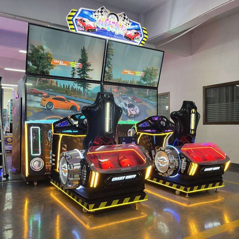 เครื่องเกมแข่งรถแบบไดนามิกสุดหรู ใช้เหรียญหยอด เกมแข่งรถแบบหยอดเหรียญ คอนโซลจำลองการขับขี่แบบหยอดเหรียญ จอแสดงผลคู่สำหรับจำลองการขับขี่