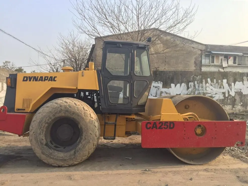 รถบดถนน Dynapac CA25D มือสองสำหรับขาย รถบดแบบล้อเดี่ยว พร้อมเครื่องยนต์ มอเตอร์ แบริ่ง ปั๊ม และชิ้นส่วนหลักอื่นๆ กำลังไฟ 97 กิโลวัตต์ มีสินค้าในสต็อก