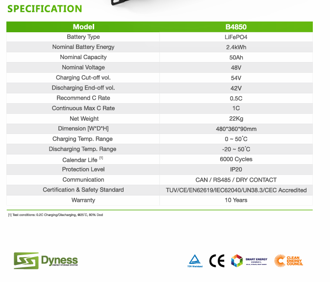 Dyness B4850 48V 2.4KWH แบตเตอรี่ลิเธียม