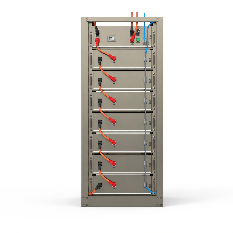 แบตเตอรี่ Dyness แบบติดตั้งบนชั้นวาง 200 กิโลวัตต์ชั่วโมง แบตเตอรี่แรงดันสูง 409.6 โวลต์ ชุดแบตเตอรี่ลิเธียม พร้อมระบบ BDU อัจฉริยะ สำหรับระบบโซลาร์เซลล์ในบ้าน