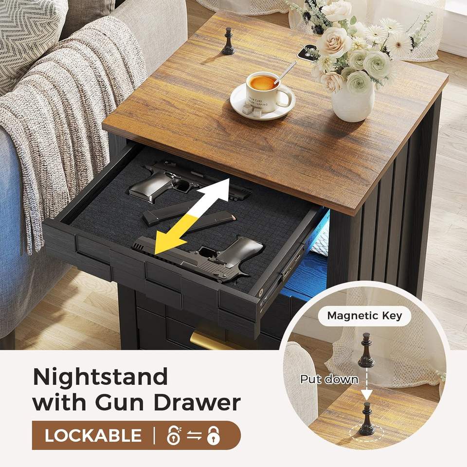 โต๊ะข้างเตียงดีไซน์ทันสมัยพร้อมลิ้นชักเก็บปืน ทำจากไม้ พร้อมกุญแจล็อค