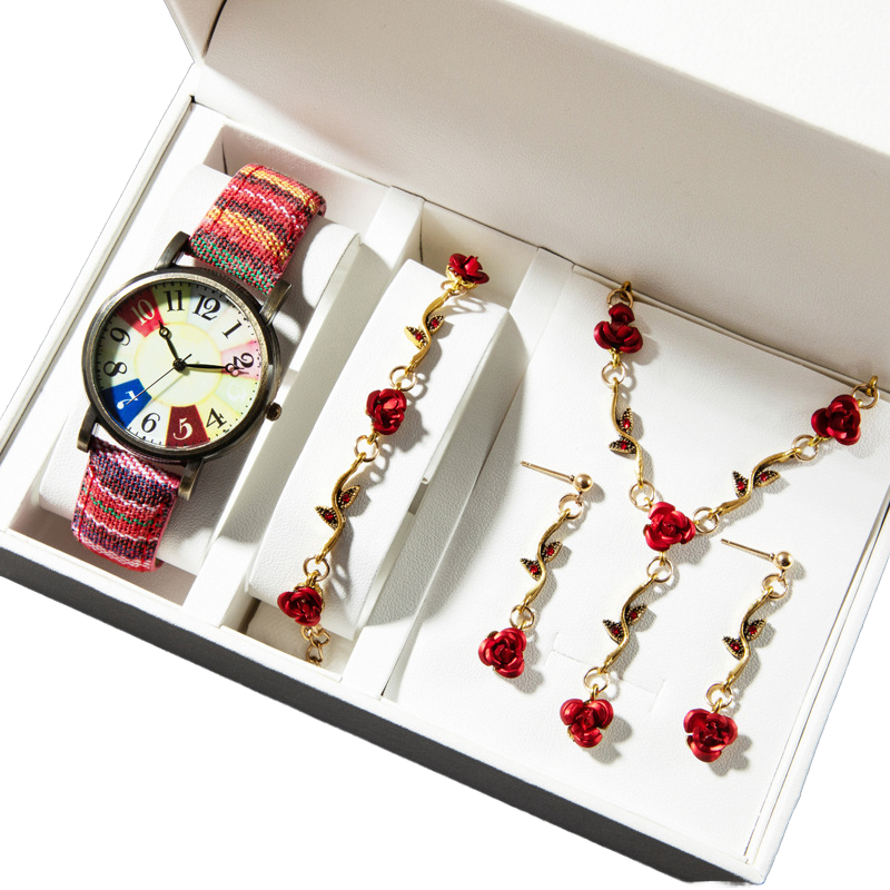 ชุดเครื่องประดับนาฬิกา E-4โรส4ชิ้นลายโบโฮของขวัญสุดพิเศษสีกุหลาบแดง4ชิ้น montre Bijoux Boho ดีไซน์แบบฮิปปี้ merveilleux cadeau