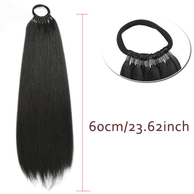 ผมหางม้าปลอมแบบยืดได้ 24 นิ้ว เส้นใยสังเคราะห์ตรง พร้อมยางยืดติดผม ต่อผมแบบหางม้าธรรมชาติ นุ่มลื่น