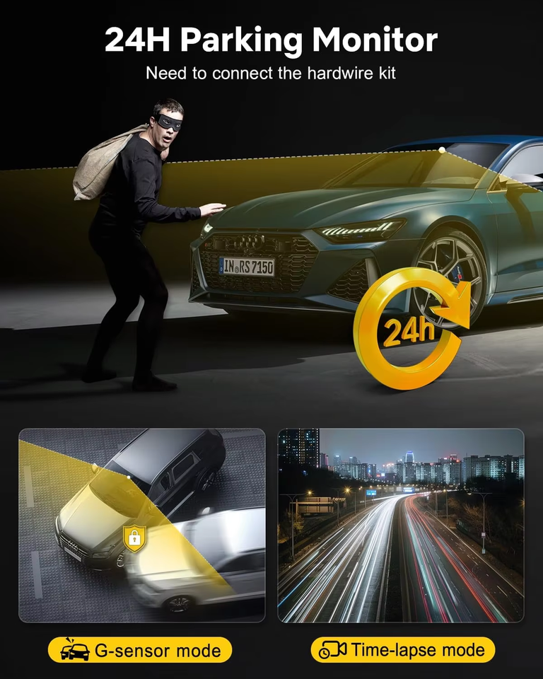 กล้องติดรถยนต์ระบบ WiFi 4K, DVR, กล้องติดรถยนต์ด้านหน้าและด้านหลัง