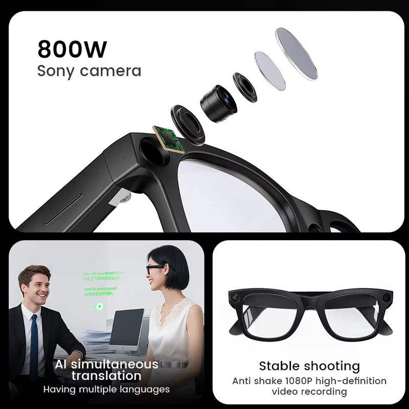 แว่นตาอัจฉริยะ E03C AI กล้องคู่ 800W ควบคุมผ่านแอปสัมผัส โทรออก ฟังเพลง แปลภาษาแบบเรียลไทม์ ชาร์จแม่เหล็ก วิดีโอ 1080P