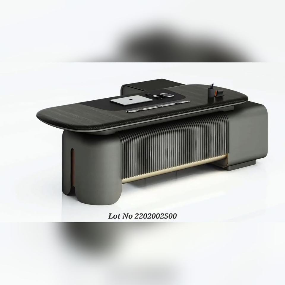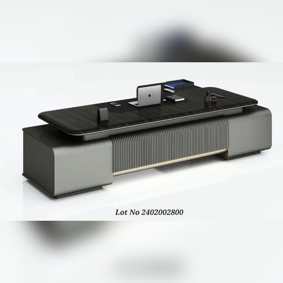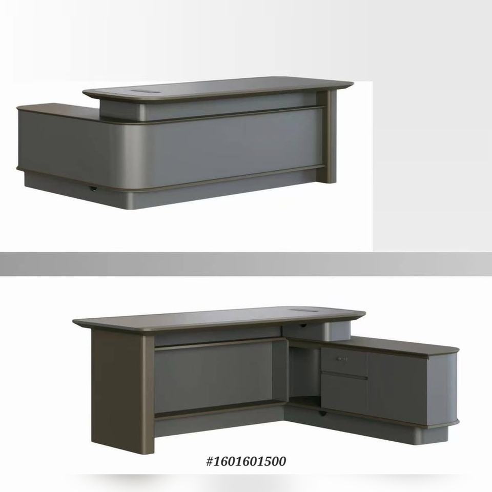 โต๊ะทำงานผู้บริหารเกรด E1 ทำจากไม้อัด พร้อมพื้นผิวหนังและเมมเบรน ดีไซน์ทันสมัย พร้อมแผงโลหะตกแต่ง