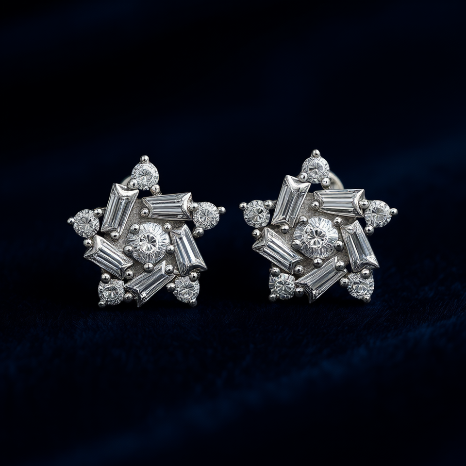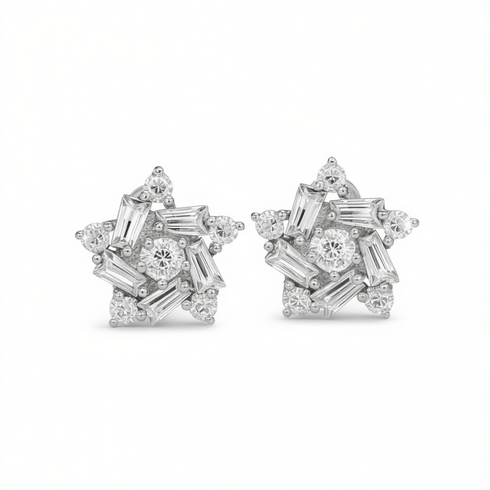 ต่างหูทองคำขาว E1000 ประดับเพชรทรงบาแก็ตต์ ตัวเรือนแบบกรงเล็บ เครื่องประดับหรูหราสำหรับผู้หญิง